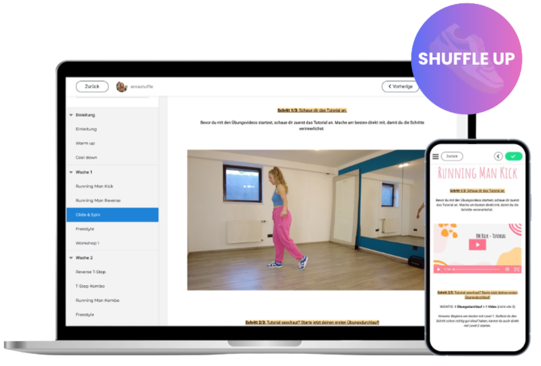 Vor zwei Jahren habe ich meine ersten Shuffle-Schritte mit Annashuffle gemacht – und was soll ich sagen: Ich bin drangeblieben! Damals hatte ich sie zufällig über Instagram entdeckt, ohne sie vorher zu kennen. Als nicht mehr ganz junge Anfängerin war ich zunächst skeptisch, ob ein Online-Kurs für mich überhaupt funktioniert. Aber heute ist das Shuffeln durch Annas Kurse ein fester und bereichernder Teil meines Lebens geworden...